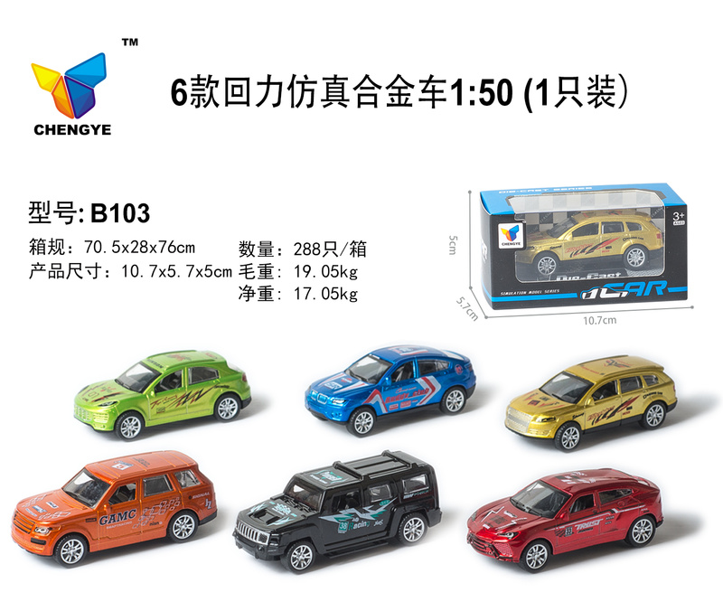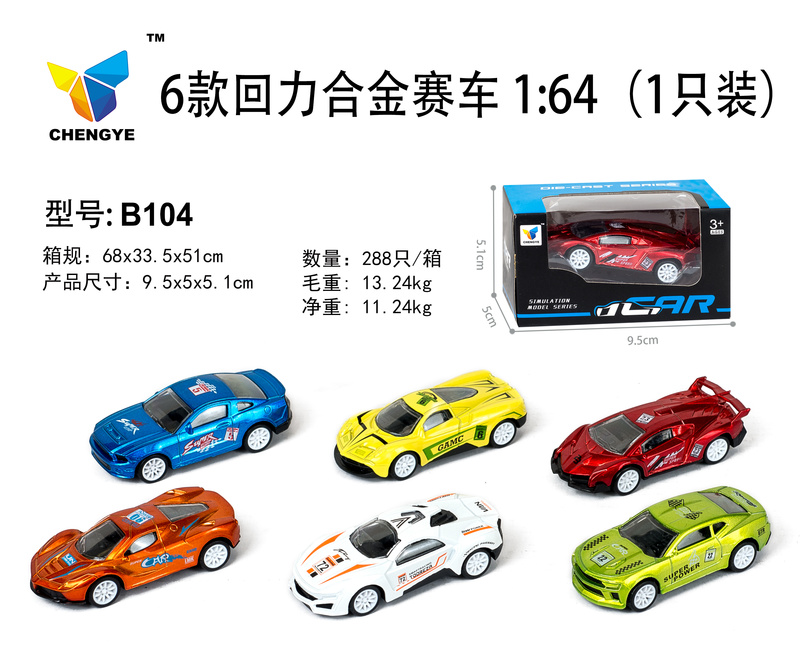 4款回力合金仿真车1:50 (4只/盒)(可开门)A204